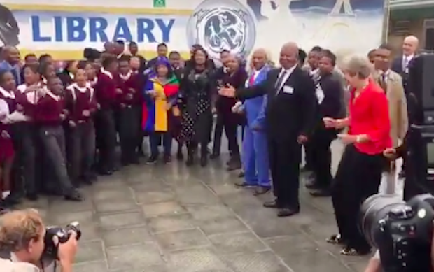 Which could possibly explain why she decided to throw caution to the wind, and join in with a spot of dancing when visiting a senior school in Cape Town this morning: