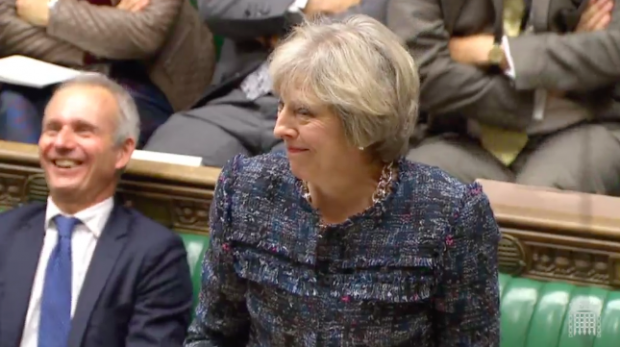 Theresa May’s track record of telling jokes in the Commons isn’t good. Last month at Prime Minister’s Questions, her wise cracks went down badly and she was criticised by a Labour MP for telling ‘silly jokes when asked serious questions’. At today’s PMQs, she was at it again – and Mr S is pleased to report she had much more luck in making her fellow MPs laugh. Backbencher Peter Bone has long been a thorn in the side of Tory leaders. But ever since the Brexit vote, he’s been somewhat more upbeat about life. And on his birthday today, he had an extra reason to be happy. Yet despite his good mood, he probably wouldn’t have been bracing himself for Theresa May’s risqué reply to his question about prisons. Here’s their exchange: