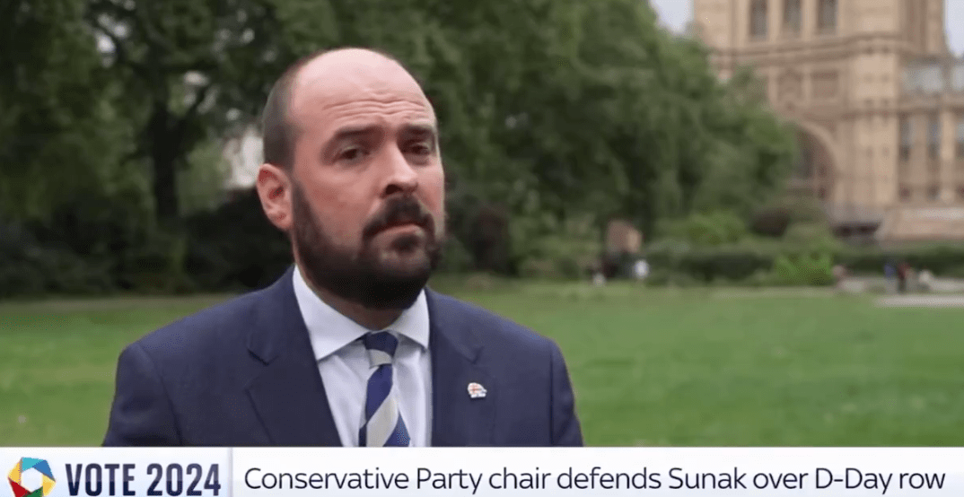 Which Tory minister is having the worst week in politics? It’s a title that Rishi Sunak seemed to have sewn up after his D-Day disaster on Thursday. But it appears his Tory chairman is now giving him a late run for his money. Richard Holden was sent out to defend the government today, following Sunak’s absence from the airwaves since Friday. But he faced his own interview embarrassment after Jon Craig of Sky decided to ask Holden as to why he switched seats this week at the very last-minute.