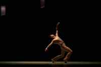Xie Xin’s Ripple is a serene counterpart, replacing Doyle’s aggravated manoeuvres with smooth, rippling arms and cradled heads. It’s not relaxed, exactly — the choreography gathers speed with the urgency of a quickening pulse — but the flowing movement vocabulary keeps things meditative, even when torsos thrust and legs sail. Will Thompson is rock-steady in his balances, while Matthew Sandiford shifts his weight like a tide slurping at the coast. The camerawork is fine, though the piece shines in spite of it, not because of it. The energy here is radiant, even through the screen.