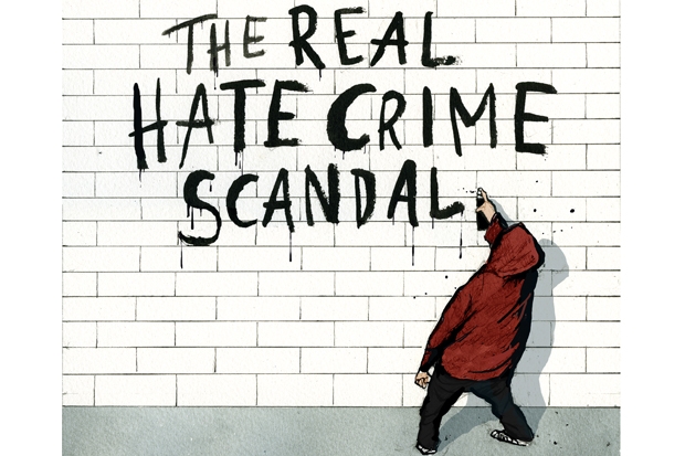 In a world obsessed with evidence-based public policy, it is odd that a new crime category which explicitly eschews evidence in favour of emotion is subjected to such little scrutiny. And it gets worse: the prosecution of a hate crime doesn’t actually have to prove that hatred was the motivation. The CPS states: ‘The prosecution does not… need to prove hatred as the motivating factor behind an offence.’ The CPS says any crime that involves ‘ill-will, ill-feeling, spite, contempt, prejudice, unfriendliness, antagonism, resentment, or dislike’ on the basis of a ‘personal characteristic’ could be a hate crime. So unfriendliness can now be criminal. Next time you read about a hate-crime epidemic, bear that in mind.