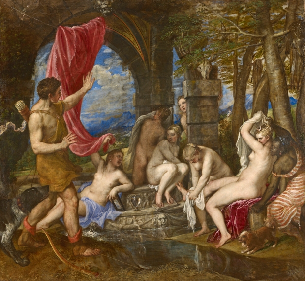 Three of these paintings, ‘Diana and Actaeon’, ‘Diana and Callisto’ and ‘The Death of Actaeon’ are now on display in Edinburgh in the new exhibition at the National Galleries of Scotland, Titian and the Golden Age of Venetian Art. The first two are, after a long fundraising campaign, now jointly owned by the National Galleries in Edinburgh and London, while ‘The Death of Actaeon’ makes its first foray outside London since 1972. It is quite a collection.