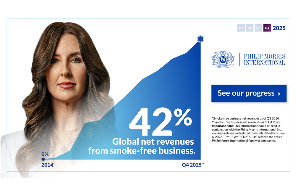 At Philip Morris International, our mission is clear: To reduce smoking by replacing cigarettes with better smoke-free alternatives for legal-age consumers.