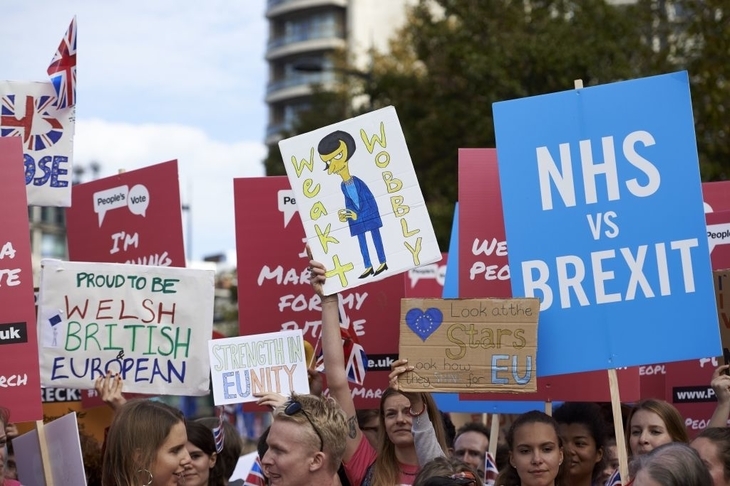 Most believe, or claim to believe, that all cross-channel travel will end in March 2019, and that Britain will become a prison-camp like North Korea. An angry mother had this scribbled on her placard: ‘I travelled freely in the EU. I want my daughters to do the same.’ She seemed unaware that 39 countries already enjoy visa-free access to the EU, and that Britain is almost certain to join this group – unless Brussels wants to wreck the tourist industries of France, Spain, Greece, Portugal, Malta, and elsewhere. Remainers also fear, again without warrant, that the government seeks to cripple the NHS by deporting millions of immigrants on Brexit Day. Few of them seem to have heard Theresa May’s repeated promises that EU citizens’ rights will be protected. Perhaps they run screaming from the room whenever she appears on TV.