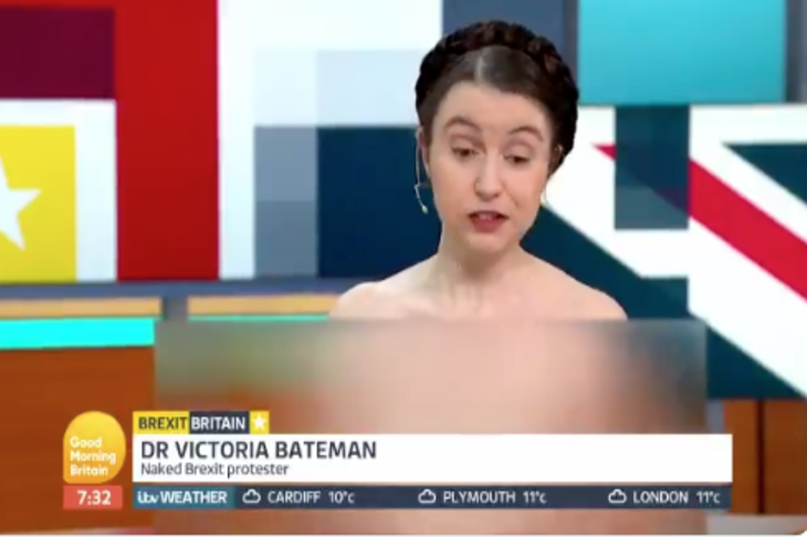 Earlier this morning, I pitched up at Good Morning Britain’s studios for what was billed as a Brexit debate with Dr Victoria Bateman A.K.A. the naked academic. I’d been warned in advance that she would be naked. And when I was shown into the studio, she was – totally.