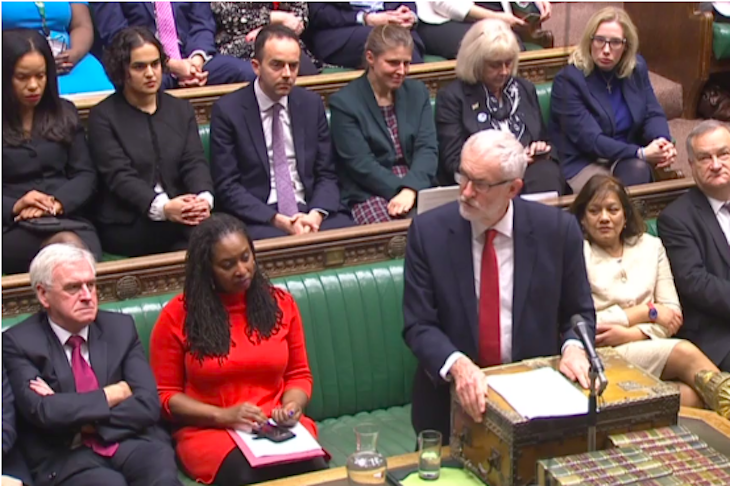 He continued with his election themes of the NHS being taken over by Donald Trump, of poverty and of what is now quite clearly a destructive ambiguity on Brexit. The Labour benches looked miserable when the Tory MPs were speaking, but that’s nothing compared to their long, sad faces when the man who insists on still leading them started speaking.