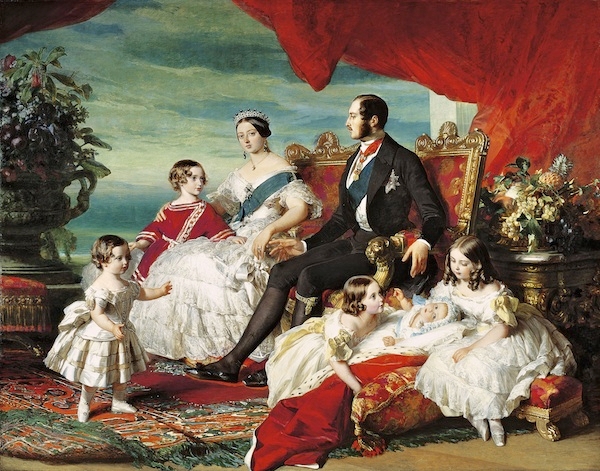 This ideal would, in due course, characterise the monarchy and captivate the public. The presentation of Victoria and Albert’s ‘respectable, close-knit, loving family’ became its standard image and has defined the Victorian age. Paintings such as Landseer’s ‘Windsor Castle in Modern Times’ (1841) encapsulate Albert’s vision: a depiction of the monarchy was not just a portrait of the Queen but of a family, perfect and united: devoted father, adoring wife, obedient children and well-behaved pets.
