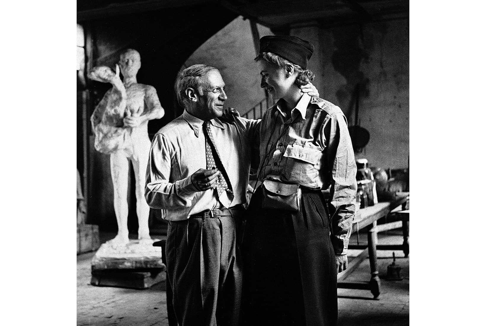During the liberation of Paris in August 1944, the photographer Lee Miller made her way to Picasso’s studio on rue des Grands-Augustins, where she was greeted with a wide-eyed grin. ‘This is wonderful – the first Allied soldier I’ve seen, and it’s you!’ the artist exclaimed, reaching up to place his hand affectionately around her neck.