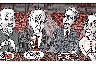 In the have-a-go 1920s, Hitchens dabbled with Bloomsbury — all that shrimp skin, all those bare bottoms in ‘The Pool’ (1927–8) owe something to Duncan Grant — and experimented with a style which, if not quite cubist, was certainly cub-ish. The Mr Blobby contours of Hitchens’s ‘Interiors at Barmoor Castle’ (1928) have, by the following year’s ‘Henry Moore at Work in his Studio, Parkhill Road, Hampstead’ (1929), hardened into something more dynamic and scalpel-edged.
