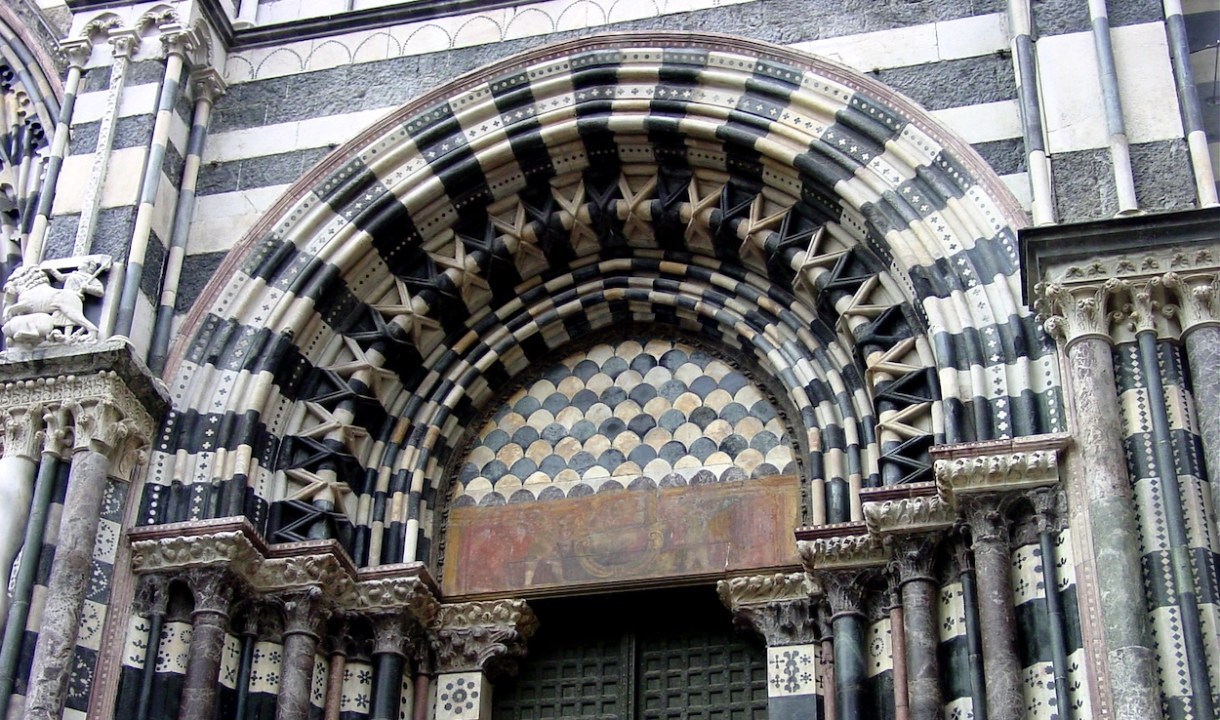 The highlight for me, though, was the room dedicated to Genoa’s most famous son – Niccolò Paganini – with two of his treasured violins, letters and other personal effects. We visited Palazzo Reale, with its mini Versailles-like Gallery of Mirrors, and more churches than I thought possible, including that of S. Matteo, with its tomb (and sword) of the great 16th-century admiral and statesman Andrea Doria; S. Donato, where Paganini was baptised in 1782, with its Joos van Cleve Adoration of the Magi; the Jesuit church with its Rubens Circumcision; S. Luca with its Grechetto Nativity and wooden (but looks marble) sculpture of Christ; and, finally, the Cathedral with its Lego-like black, white and pink exterior and tiny marble dog that was carved in a column by the entrance 800 or so years ago.