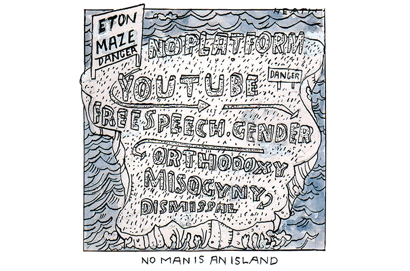 I’ve since been called everything from a free-speech martyr to a misogynist. While the video has received views equivalent to more than 100 times the size of the Eton student body, it was the boys themselves who first came to my defence, with a compelling open letter saying they felt ‘morally bound not to be bystanders in what appears to be an instance of institutional bullying’. They boldly claimed that ‘young men and their views are formed in the meeting and conflict of ideas’, and correctly pinpointed free speech as the principle at stake — otherwise why was it so essential the video should come down?