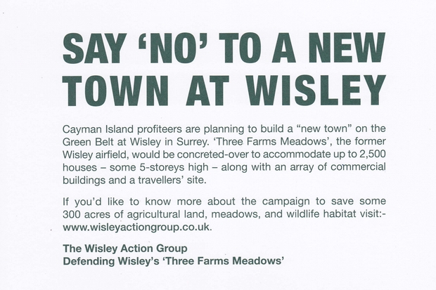 This week, I have mostly been distributing leaflets emblazoned with the legend Say No To A New Town At Wisley. Call me picky, but I don’t think Guildford Borough Council should just drop 2,175 new houses on 300 acres of picturesque green belt land in Surrey, ruining one of the most popular areas for walking and outdoor recreation near London.