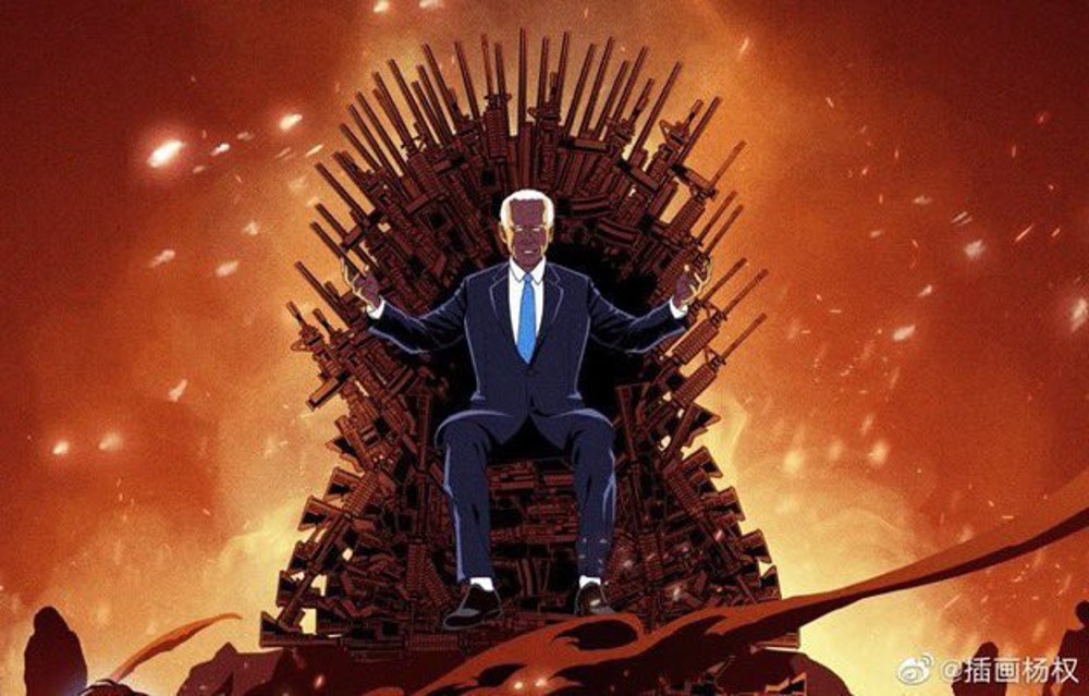 “Dark Brandon” was a humorous and absurdist combination of memes. Biden, as a sinister, red-eyed antihero, could be found threatening old ladies or decriminalizing driving under the influence. This phenomenon took energy from Chinese propaganda that portrays Biden as some sort of supervillain, with a demonic glowing stare and a throne made of guns.