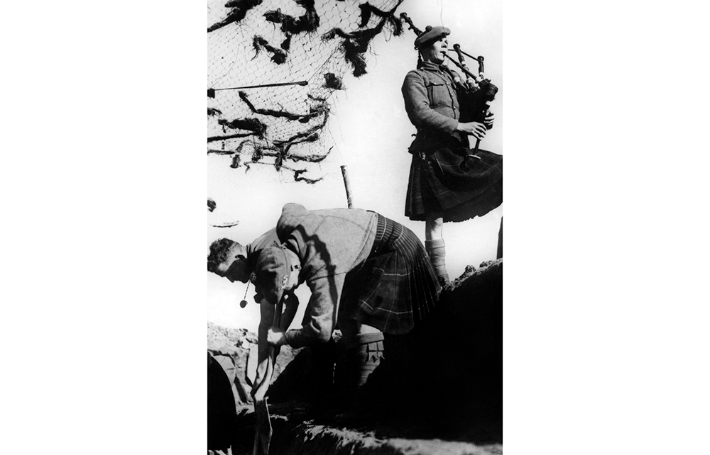 A detachment of a Highland Regiment digging trenches in France in the second world war. [Getty Images]