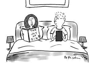 Friends looking at these cartoons describe them as ‘Hogarthian’ and are astonished and depressed nobody is prepared to publish them. There is a more sombre drawing of Buddha attending a counselling session for the morbidly obese — but that cartoon is the exception. Most of the vignettes show these great figures engaging in cheerful leisure pursuits, to advance the agreeable notion that no matter how eminent, wise and godly these people were, they valued a bit of ‘down time’ and ‘chilling’, as modern parlance has it. So, Zoroaster is skateboarding with members of S Club 7, Jesus Christ is threatening to lamp an opposition supporter during a tense local derby game and Mohammed, PBUH, is shown on a Ryanair Weekend City Break to Paris, posing for a selfie in front of the Eiffel Tower.