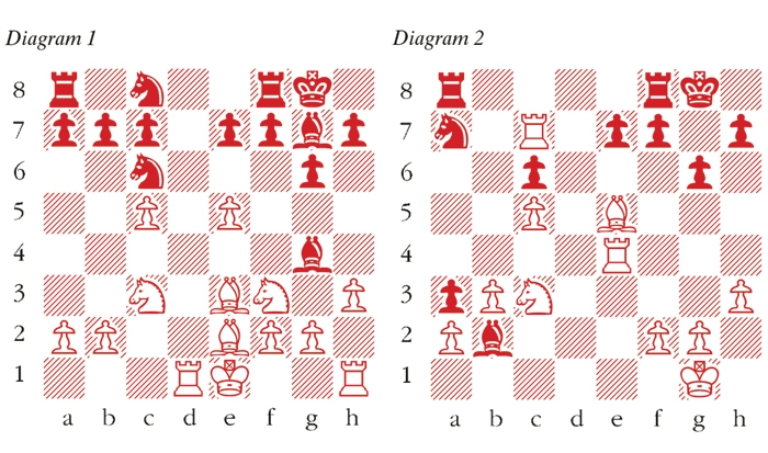 1 d4 Nf6 2 c4 g6 3 Nc3 d5 4 Nf3 Bg7 5 Qb3 dxc4 6 Qxc4 0-0 7 e4 Bg4 8 Be3 Nfd7 9 Rd1 Nc6 10 Be2 Nb6 11 Qc5 Qd6 12 e5 Qxc5 13 dxc5 Nc8 14 h3 (see diagram 1) Karpov’s home analysis showed that after this move Black’s defence was very difficult as the prospects of the knight at c8 could be significantly restricted. 14 … Bxf3 15 Bxf3 Bxe5 16 Bxc6 A surprise. Kasparov was expecting 16 Rd7, planning 16 … e6 17 Bxc6 bxc6 18 f4 Bg7! 19 Rxc7 Re8 20 Rxc6 Ne7 21 Ra6 Reb8, and Black regains the pawn with sufficient counterplay. 16 … bxc6 17 Bd4 White intends an exchange of minor pieces, leaving the opponent with a broken pawn structure on the queenside and a restricted knight on c8. 17 … Bf4 18 0-0 a5? An incorrect plan. 18 … e5 — as in Karpov-Timman, played later at Tilburg, 1986 — would have enabled Black to resist. 19 Rfe1 Now the knight on c8 cannot manage to get to the centre, and the game is essentially decided. 19 … a4 20 Re4 Bh6 21 Be5 a3 22 b3 Na7 At last the luckless beast comes into play, but its imaginary freedom is acquired at too high a price. 23 Rd7 Bc1 24 Rxc7 Bb2 (see diagram 2) 25 Na4 The simplest and most convincing solution. After the incautious 25 Rxe7 Rfe8 keeps Black alive, for example: 26 Bd4 Rxe7 27 Rxe7 Rd8 28 Be5 Nb5 29 Nxb5 Bxe5 30 Rxe5 Rd1+ 31 Kh2 cxb5 32 b4 Kf8, and Black can still struggle on. 25 … Nb5 26 Rxc6 Rfd8 27 Rb6 The main idea of White’s strategy. He is not diverted by the capture of the bishop on b2, but tightens his grip. 27 … Rd5 28 Bg3 Nc3 29 Nxc3 Bxc3 30 c6 Bd4 31 Rb7 Black resigns