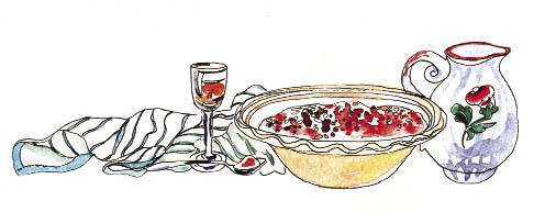 Carrying on the tradition of well-born ladies who travel and write are Elizabeth Luard, whose new book is Recipes & Ramblings (Oldie Publications, £14.99), and Josceline Dimbleby, who contributes recipes, travels and memories in Orchards in the Oasis (Quadrille, £25). As any truly accomplished woman should, Luard illustrates her work with her own watercolours (reproduced above). The recipes are vigorous and eclectic — one spread features Melton Mowbray Pie on the left hand page, Georgian shchi on the right — and she is sensibly willing to include and credit other authors rather than, as often happens, making a minuscule change to the ingredients and passing a recipe off as her own. There is an excellent chapter entitled ‘Quick & Easy’ that prods non-cooks — her beady eye is on men — to cook. ‘Make it [mayonnaise] once and you’ll never look back’.