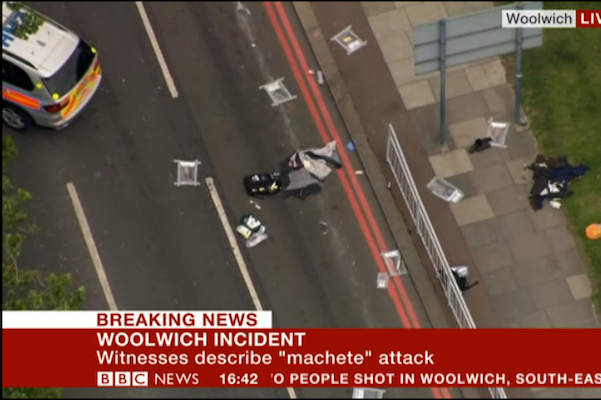 Another concern tonight is maintaining calm on the streets. As the Telegraph reports in a gripping interview with a woman who confronted the attackers at the scene, one of them declared ‘We want to start a war in London tonight.’ But with the exception of a tiny demonstration by the thugs of the EDL in Woolwich, there does seem to be calm on the streets of London tonight.