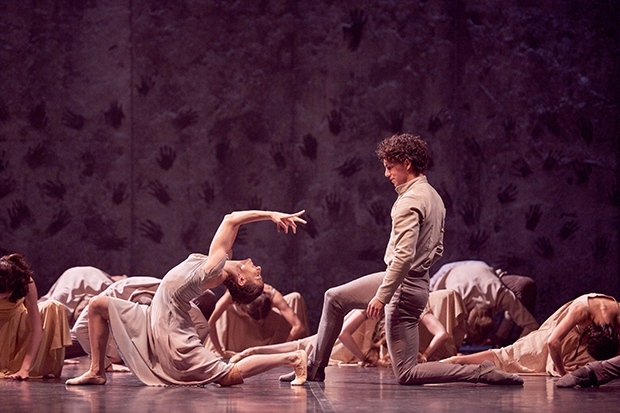 Khan and his dramaturg, Ruth Little, have sharply refocused the ballet’s narrative without fully addressing all the questions arising from the changes they’ve rung. Their Giselle is no longer a naive village damsel but rather a spirited member of a migrant community (identified in the synopsis as ‘Outcasts’). These factory workers occupy one side of a huge grey wall; indeed, when the curtain rises they’re pushing en masse against this monumental divide. Behind it is Giselle’s lover — and, as we soon gather, future co parent. Albrecht is still a member of an oppressive ruling class (described here as ‘Landlords’) whose handful of other representatives swan about in fancy dress haute couture.