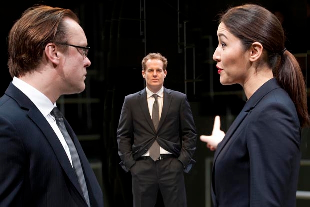 After 20 minutes of poisonous witter, one of the bullies floats the idea of a tribunal. ‘If you win, and stay, I’ll make your life a nightmare.’ Deniable in court? Sure. But these are daily attacks so the victim has ample opportunity to conceal a mike, nail the nasties and collect a fortune. He’s sitting on a gold mine. And his persecutors are risking dismissal, public execration and long-term unemployment. Simple facts. That the author ignores them doesn’t just invalidate the play but transports it from the realm of misanthropic drivel into the dimension of fantasy. It’s like hearing a stud-fetishist relating last night’s S&M wet dream. As the toxic dialogue flowed ceaselessly onward, I began to fear I might pass out with fatigue when — clump! — someone did it for me. A pretty blonde in the standing area crashed to the floor and lay there, elegantly sprawled, like a Burne-Jones model. The staff revived her with sips of water and shoulder strokes. She then took the immensely brave decision to sit, or crouch rather, through the remnant of this anaesthetic presentation.