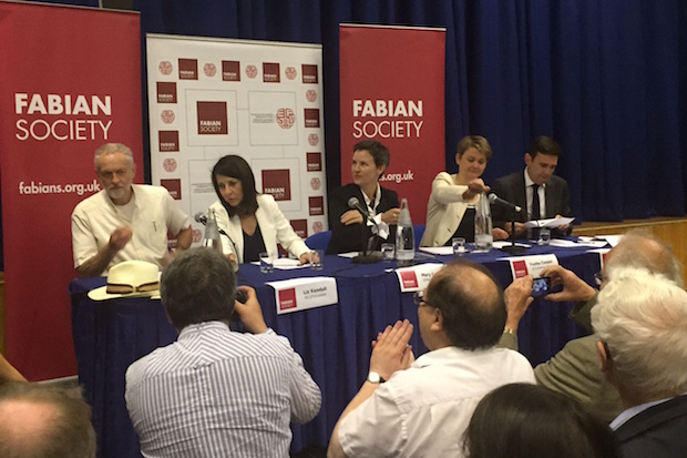The Fabian Society hosted a hustings for the Labour leadership this afternoon, featuring all five of the declared candidates: Andy Burnham, Yvette Cooper, Liz Kendall, Mary Creagh and Jeremy Corbyn. Following the Progress event a few weeks ago, this is the second time four of these candidates have appeared onstage together — Corbyn only entered