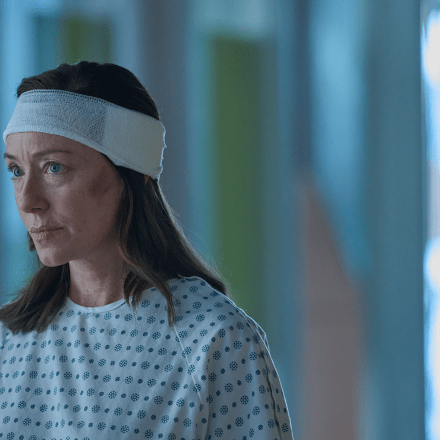 A middle-aged woman wearing what looks like Princess Diana’s infamous ‘revenge dress’ and a balaclava from an IRA funeral approaches the hole in the floor. The raccoon that lives there, clearly used to her presence, looks up expectantly. Sure enough, the woman empties a bag of dry food into the hole. The scene is framed
