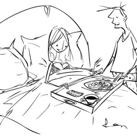 ‘Breakfast in bed… freshly brewed coffee… and the morning-after pill. You really are the perfect boyfriend.’