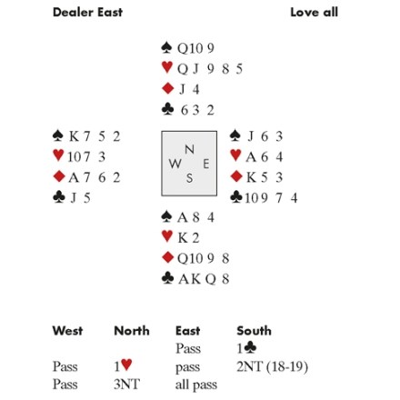 England had a narrow lead going into the second weekend of the Camrose, with the Irish National team and the Irish Bridge Union team (the host country gets to field two) in hot pursuit. The highly effective partnership of Espen Erichsen and Glyn Liggins (England) defended today’s hand against Wales while the two Irish teams