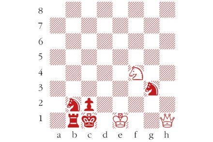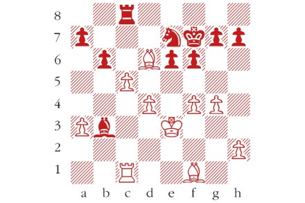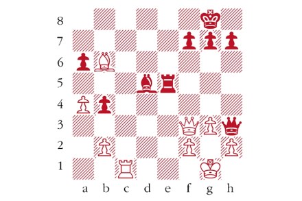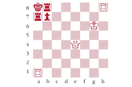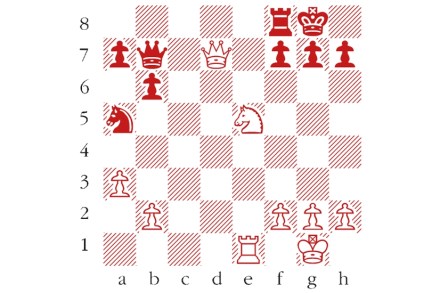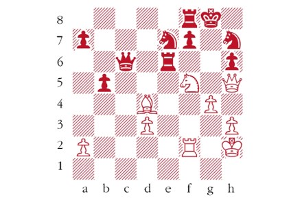 White to play and mate in two moves. Composed by B.P. Barnes, Skakbladet 1961. Answers should be emailed to chess@spectator.co.uk by Monday 5 April. There is a prize of £20 for the first correct answer out of a hat. Please include a postal address and allow six weeks for prize delivery. Last week’s solution 1…Qf5?