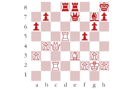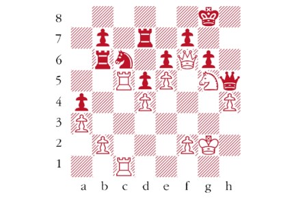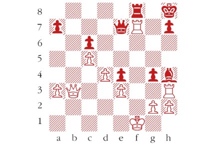Black to play, Ding Liren–Daniil Dubov, Lindores Abbey Rapid Challenge, May 2020. Dubov’s rook is under attack, but his next move turned the tables, prompting immediate resignation. What did he play? Answers should be emailed to chess@spectator.co.uk by Monday 15 June. There is a prize of £20 for the first correct answer out of a
