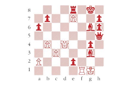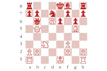 White to play and mate in two moves. Composed by Edith Baird, Illustrated Sporting and DramaticNews, 1890. Email answers to chess@spectator.co.uk by Wednesday 27 December. There is a prizeof £20 for the first correct answer out of a hat. Please include a postal address and allow six weeks for prize delivery. Last week’s solution King
