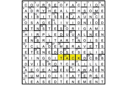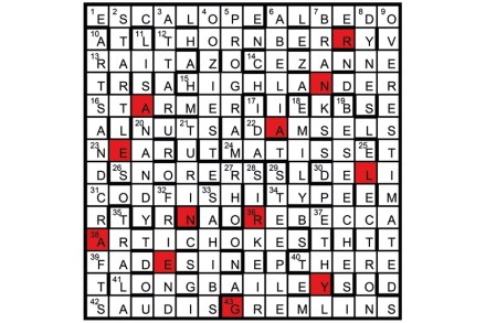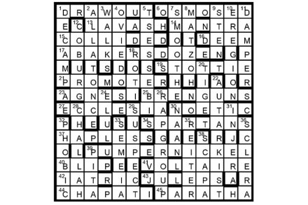 The unclued lights include the name of a British daily newspaper; 3/26A, 9/35, 12, 24, 28/31D and 34/21. First prize Susan Hay, Old Perton, Staffs Runners-up Alison Gillam, Knotty Green, Bucks; Laurence Pearce, Lympstone, Devon
