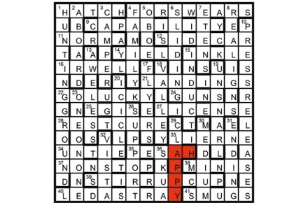 The event was THE GLORIOUS TWELFTH (1D/29) (12 August, opening day of the grouse-shooting season). Remaining unclued lights bring to mind ‘grouse’: LAGOPUS LAGOPUS SCOTICUS (43/19: scientific name); RUGOSE and ROGUES (11 and 3: anagrams); GRIPE and BLEAT (39 and 25: synonyms). First prize Robert Burgon, North Berwick, East Lothian Runners-up Jack Shonfield, Child