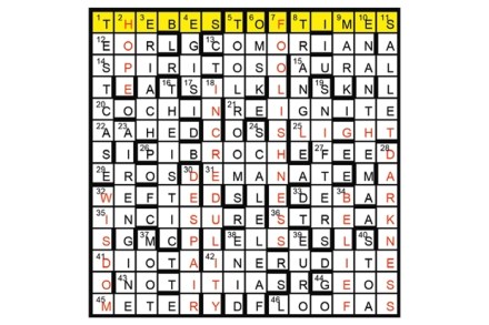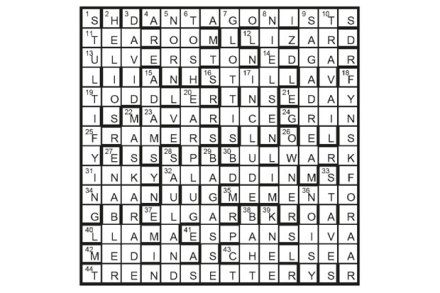 4, 40, 43, 1, 3, 16 and 17 were all examples of PORTMANTEAU words, into which are packed the sense (and sound) of two other words. First prize F. Whitehead, Harrogate, N. Yorks Runners-up Mark Rowntree, London SE10; D.G. Page, Orpington, Kent
