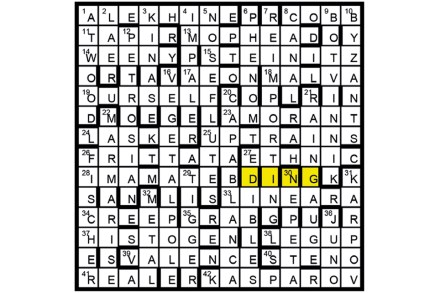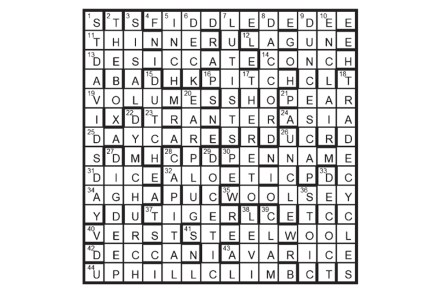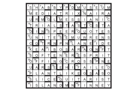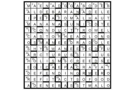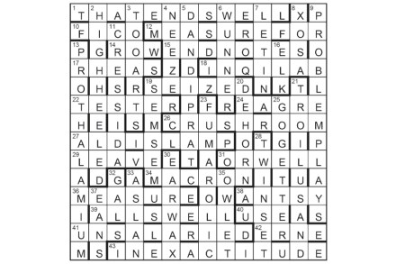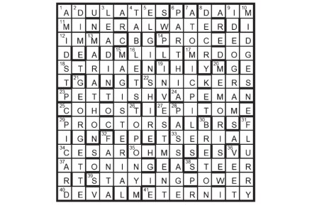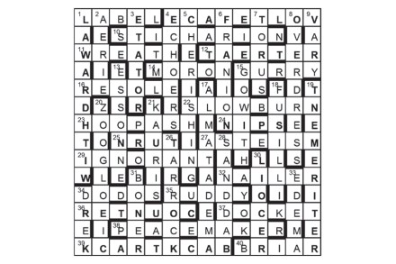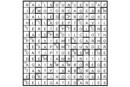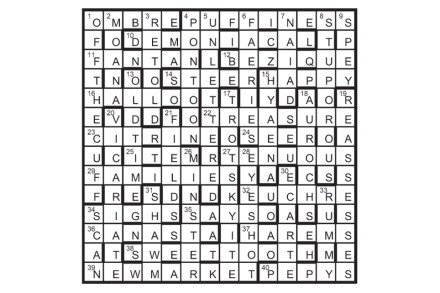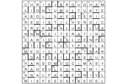 The key word is GIBBON (highlighted). 1A, 1D and 28D are types of gibbon; 16D is by 18A 29A Gibbon; 32D Gibbon wrote The History of the 13A 38A of the Roman Empire. First prize Anne Clements, Bromley, Kent Runners-up Janet Baines, Winchester, Hants; L. Malone, Dumfries