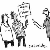 ‘Much longer in this go-slow protest and we’ll miss our cancelled flight.’