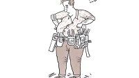 ‘...hammer, chisel, screwdriver, spanner, saw, screws, nuts, bolts...Now all I need is a job.’