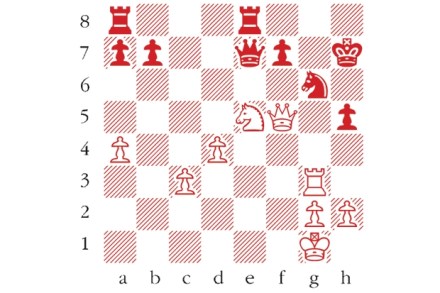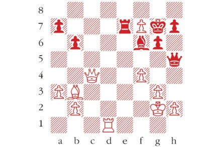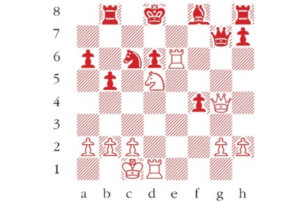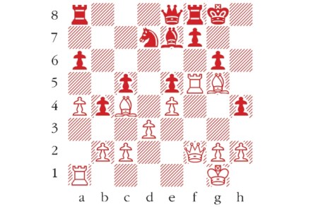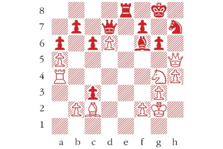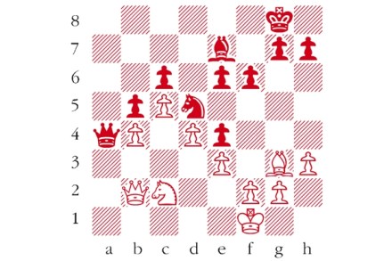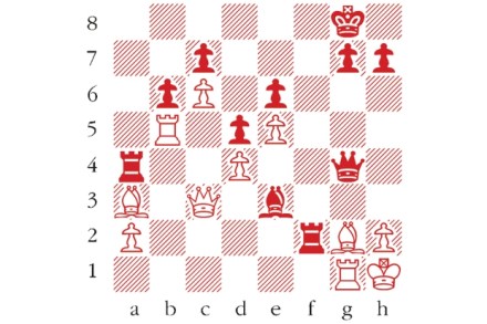 Black to play. This is from Arnason-Keene, London 1981. How did Black bring his bishops to life? Answers to me at The Spectator by Tuesday 14 June or via email to victoria@spectator.co.uk or by fax on 020 7681 3773. There is a prize of £20 for the first correct answer out of a hat. Please