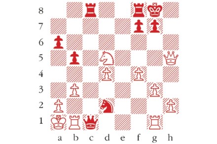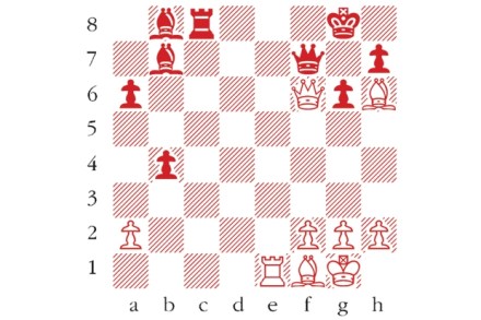 White to play. This position is from Keres-Spassky, Gothenburg 1955. Can you spot White’s crushing blow? Answers to me at The Spectator by Tuesday 26 January or via email to victoria@spectator.co.uk or by fax on 020 7681 3773. There is a prize of £20 for the first correct answer out of a hat. Please include