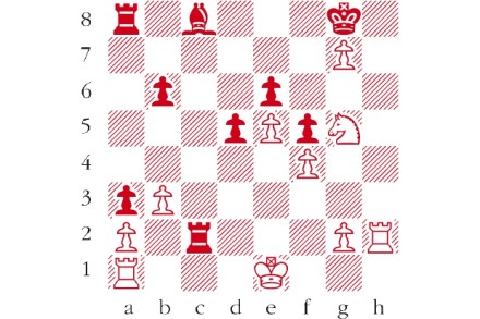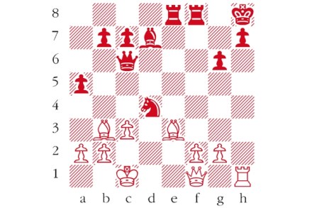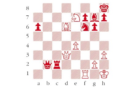 White to play. This is from Lasker–Teichmann, St Petersburg 1909. Black had already resigned this game as he could anticipate White’s crushing blow. What had he foreseen? Answers to me at The Spectator by Tuesday 1 November or via email to victoria@spectator.co.uk. There is a prize of £20 for the first correct answer out of