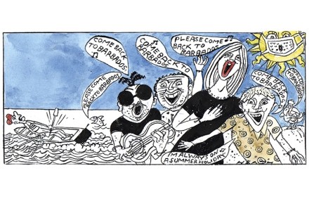 For the past few weeks there’s been a 7 p.m. curfew in Barbados as part of what the government calls a ‘national pause’ (lockdown, essentially). I’m actually grateful because it’s been manic lately. The excitement started with the visit of Captain Sir Tom Moore in December. I was commissioned by a golfing group called the ‘Sandy Lane Swingers’ to write and perform a song, ‘Marching on to Victory’, at a charity lunch. It’s a jaunty tune, composed by my co-writer Jeremy Limb, with a singalong at the end. Captain Tom joined in, waving his napkin in the air. As an encore I sang a verse of ‘You’ll Never Walk Alone’