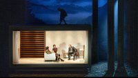 TheatreThe Duchess [of Malfi] has been partially updated by Zinnie Harris in a puzzling modern-dress production. The set by Tom Piper resembles a concrete bunker in an abandoned apartment block and Ben Ormerod’s lighting throws weird shadows across the playing area, which seems to consist mostly of discarded plywood sheets. It feels like a scout-hut