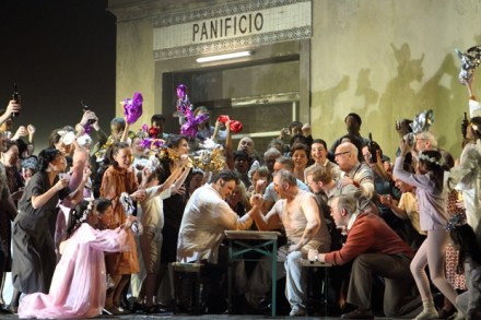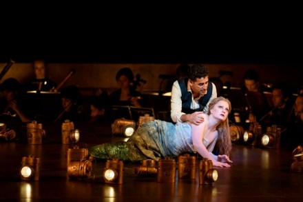 OperaCentre stage, there’s an industrial-looking black platform, secured by cables. The Three Ladies snap the unconscious Tamino on a mobile phone. The Three Boys look like Gollum in a fright wig. And Papageno, dressed as an ageing vagrant, simulates urination (at least I hope that’s what it was) into an empty wine bottle. Simon McBurney’s