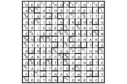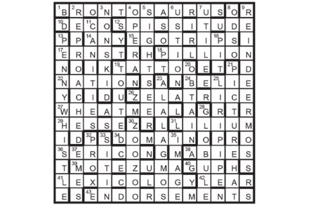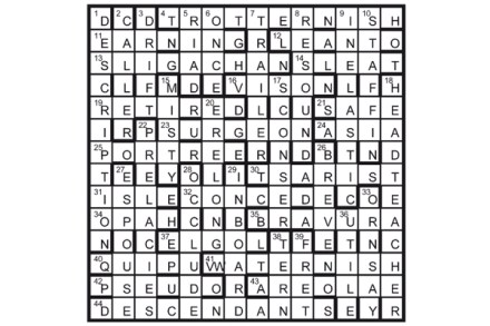 The unclued Down lights (individually or as a pair) are of a kind in short, as are the unclued Across lights (one of two words) all paired. In short together, they reveal the title of this puzzle. Across 1 Chap on a demo who is on the boundary (8) 10 Exaggerated