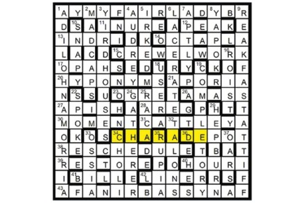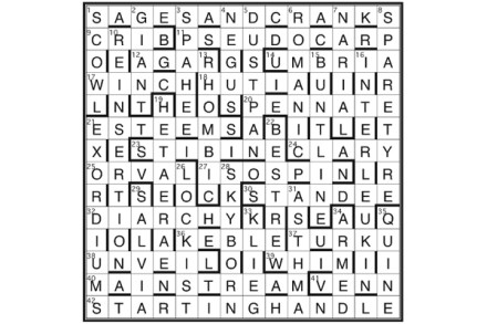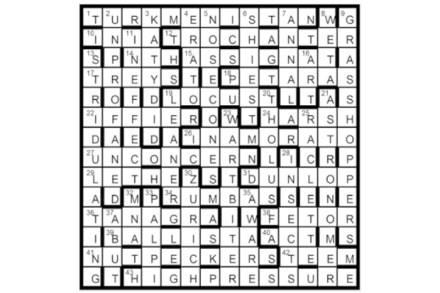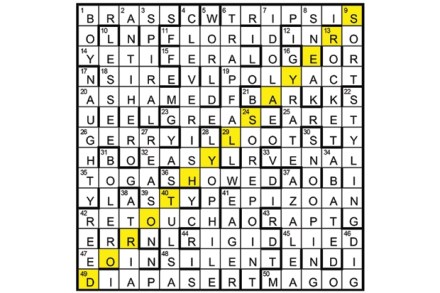 Corrections of misprints in clues give STEP ON THE GAS, indicating the unclued lights in each of four columns in the grid. First prize Virginia Porter, Gwaelod-y-Garth, Cardiff Runners-up Richard Poole, Harlech, Gwynedd; John M. Brown, Rolleston-on-Dove, Staffordshire
