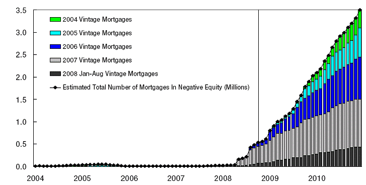 Estimated number of households in negative equity, 2003-10 If you’re a homeowner, turn away now. CoffeeHousers may remember recent reports of 1.2 million houses at risk of negative equity  – well, that may just be the start of a negative equity tsunami. This Citi graph, the latest in our occasional series, shows what would happen