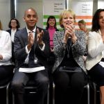 Dominic Raab’s launch was just downstairs from the event that Matt Hancock held, and rather more serious, too. He was able to underline his parliamentary support, filling the front row of his audience with MPs who cheered loudly at appropriate moments. He was introduced by Maria Miller, who joked that she hoped to persuade him