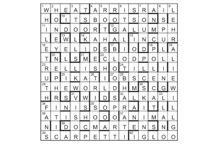 Around the perimeter clockwise from square 1 goes a quotation in ODQ minus its last word. This last word suggests the remaining unclued lights, a final example of which (6) must be highlighted in the completed grid. Across 11 Jam is an Asian food (6) 12 US record nut with some bread (6) 15 I’m