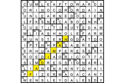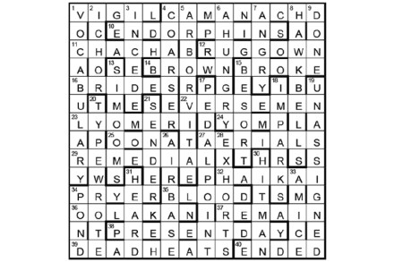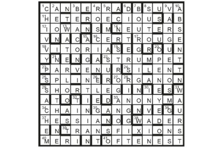 Clockwise round the grid from 21 runs a timely quotation (9,5,3,5,2,7,3,11,5) (in ODQ) followed by the initials of its author, a 2/5. The source is 18/17. Across 8 Plump for some drinks and a sandwich (5) 9 Law-officer fills ditch for president (6) 10 Passé person knows Beatrix by name (7, hyphened) 12 Classy