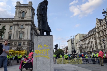The statue of Winston Churchill has been defaced again with another piece of graffiti branding the most popular Brit of all time ‘a racist’. It seems the Met police has arrested someone on suspicion of criminal damage. Meanwhile, police finally cleared Parliament Square, ten days after the Extinction Rebellion protests first began. But not before a group